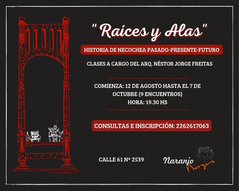 Se informa a la comunidad que el día viernes 12 de agosto comenzará a dictarse, durante nueve viernes consecutivos, el curso audio visual «Raíces y Alas», el pasado presente-futuro de nuestra ciudad. El mismo estará a cargo del arquitecto Néstor Jorge Freitas.