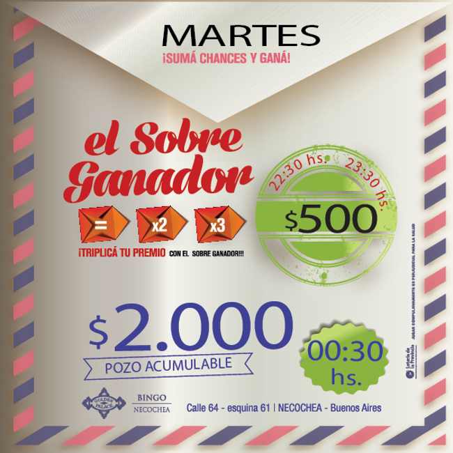 El pozo acumulado actualmente tiene un valor de $2.000, y se sorteará pasada la medianoche con metodología “acumulable”, es decir, si no hay favorecidos dicho pozo acumulará $ 2.000 más para el próximo día Martes. Previo al mencionado sorteo, a partir de las 22.30hs se extraerán 2 cupones con modalidad “sale o sale” por premios de hasta $ 3.000 en efectivo en total.