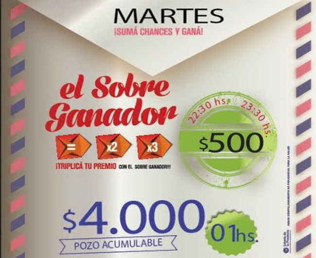 El pozo acumulado actualmente tiene un valor de $4.000, y se sorteará pasada la medianoche con metodología “acumulable”, es decir, si no hay favorecidos dicho pozo acumulará $ 2.000 más para el próximo día Martes. Previo al mencionado sorteo, a partir de las 22.30hs se extraerán 2 cupones con modalidad “sale o sale” por premios de hasta $ 3.000 en efectivo en total.