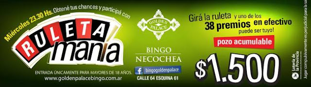 HOY, MÁS DE $2.000 EN PREMIOS EN LA PROMO “RULETAMANIA” DE BINGO GOLDEN PALACE