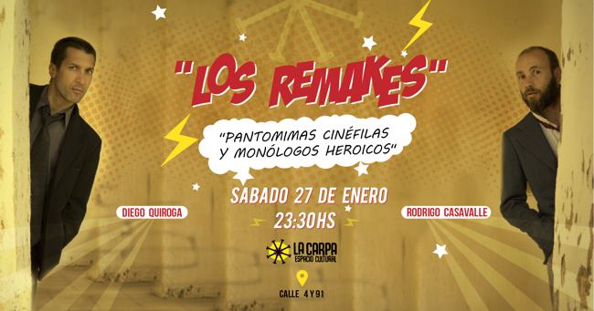 Diego Quiroga y Rodrigo Casavalle son “Los Remakes”, un dúo de humor formado en la provincia de Mendoza, que llega por primera vez a Necochea con su show «Pantomimas cinéfilas y monólogos heroicos».