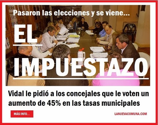 IMPUESTAZO: VIDAL QUIERE UN AUMENTO DEL 45% EN LAS TASAS PARA 2014