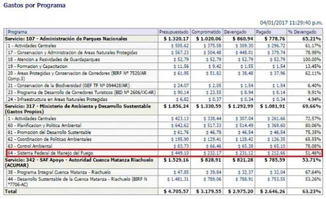 Semanas después del inicio de múltiples focos de incendios en por lo menos tres provincias –La Pampa, Río Negro y Buenos Aires- el responsable del área a nivel nacional, Sergio Bergman, admitió ayer que las áreas quemadas ya superan el millón de hectáreas y anunció que hoy viajaría a algunas de las zonas afectadas para «coordinar los trabajos» y «minimizar los riesgos». Sin embargo, a lo largo del año que pasó sólo utilizó la mitad de los recursos disponibles: según datos oficiales, el Sistema Federal del Manejo del Fuego que depende del Ministerio de Medio Ambiente y Desarrollo Sustentable se ejecutó en un 51,46%.