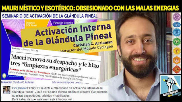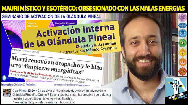 En campaña, Mauricio prometió crear 1 millón de puestos de trabajo y ya está cumpliendo. Uno de esos nuevos puestos cayó en manos de Carlos Arslanian, instructor certificado y activador de la glándula pineal. Desde el Facebook CCA Pineal, el instructor comparte los cursos y seminarios que imparte para la apertura de esta importante glándula, cursos en los que promete “potenciar tus habilidades creativas al recuperar tu real identidad” y “crear la vida que hemos soñado”.