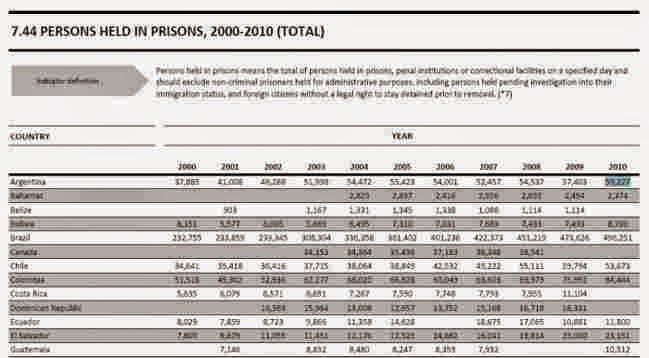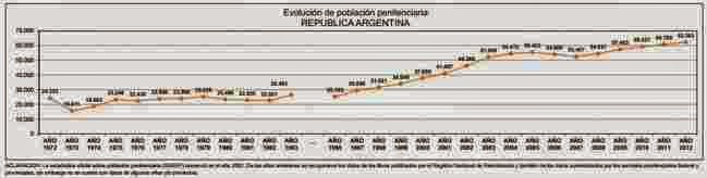 ¿Nadie va preso en Argentina? ¿Los delincuentes entran por una puerta y salen por la otra?Para verificar ambas afirmaciones, repasemos los números de la misma Organización de las Naciones Unidas sobre la evolución de la población carcelaria en Argentina: