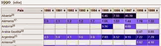Basados en los datos de la ONU, la evolución de la tasa de homicidios en Argentina en la década 1990-1999 es la siguiente: