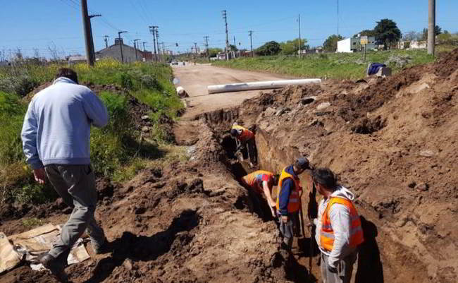 En la intersección se realizan tareas de zanjeo para el cruce de las nuevas tuberías y la conexión con la cámara, por lo que se informa a los vecinos que el sector quedará restringido al paso vehicular.