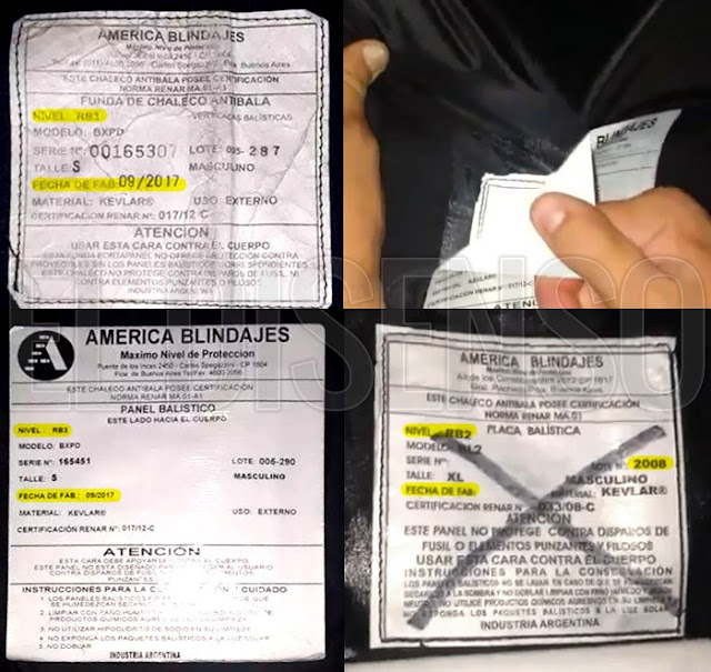 En el siguiente video vas a ver como una persona que formaría parte de las fuerzas de seguridad de la provincia de Buenos Aires, expone que al retirar de un chaleco antibalas la etiqueta principal, fechada en 2017 con protección de blindaje nivel RB3, se puede ver que abajo hay una etiqueta de fecha 2008 con nivel RB2. Entonces explica: “Estos chalecos nos entregaron en noviembre. Con fecha 9 de 2017, nivel RB3. Perfecto. La reconfirmación de la fecha y del nivel. Y debajo de la etiqueta, bien pegado por suerte, la verdadera etiqueta del chaleco con nivel RB2 con fecha de 2008. O sea vencidos. Nos entregaron chalecos vencidos. Así nos tienen en la provincia de Buenos Aires“.