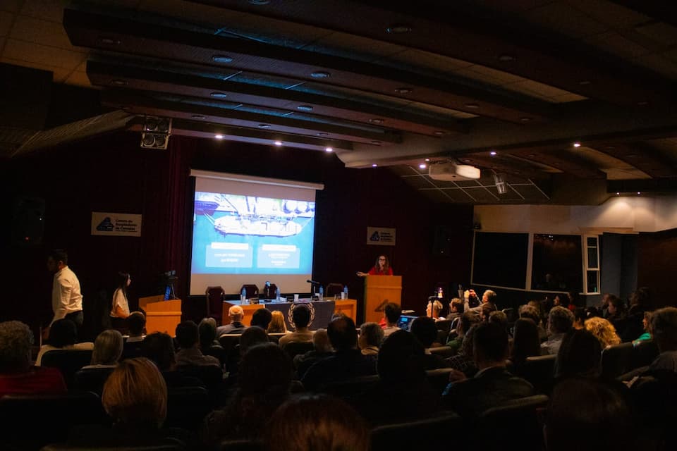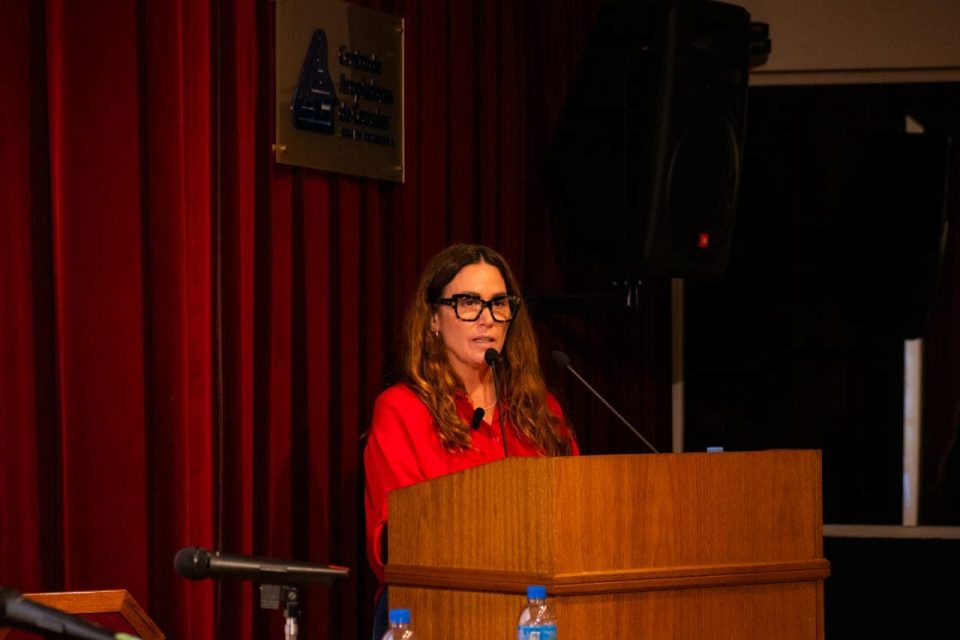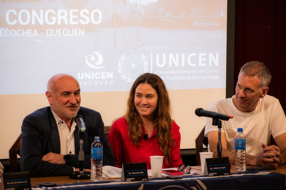 Junto al rector de la UNICEN, Dr. Marcelo Aba, la prosecretaria de la sede Quequén de la entidad organizadora, Mg. Marcela Mastrocola, y el titular del Centro de Acopiadores, Juan Bautista Iriberri, la presidenta del Consorcio de Gestión de Puerto Quequén brindó una exposición destacando los aspectos más relevantes del último año de trabajo en la entidad marítima.