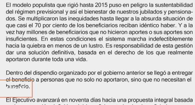 Sobre las asignaciones universales por hijo, la presentación que les exhibieron a los delegados provinciales rezaba “congelar AUH”, pero lo alivianaron en el texto final, donde quedó “modificar indexación AUH”. En concreto quieren que su alza no supere la inflación (y que quizás pierda poder adquisitivo).
