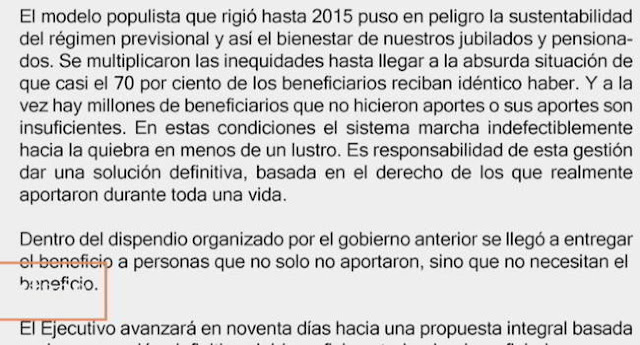 El presidente Mauricio Macri aceptó el plan de Nicolás Dujovne y el FMI para recortar jubilaciones y bajar de 5 millones a 2 millones de jubilados. La idea es eliminar la mayoría de las jubilaciones que se lograron en el gobierno anterior por moratoria previsional –más de tres millones de abuelos- y la suba de la edad para jubilarse, tanto para el hombre como la mujer, a los 70 años.