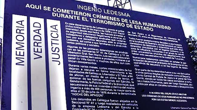 Cientos de personas resultaron víctimas en las localidades de Libertador General San Martín y Calilegua del Departamento de Ledesma en la provincia de Jujuy. Se sabe que al menos unas sesenta personas eran empleados u obreros del Ingenio Ledesma o tenían un rol activo en los sindicatos de trabajadores. Docentes, médicos, abogados y estudiantes también fueron víctimas de la represión vinculada de algún modo a la empresa, debido al dominio extendido que supo construir en la zona a lo largo de varias décadas.