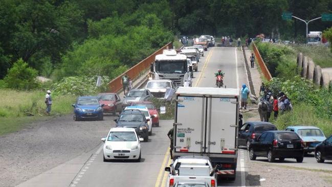 En horas de la mañana, los manifestantes marcharon hasta el acceso sur, y procedieron a cortar la ruta levantando piquetes en ambos accesos al puente.