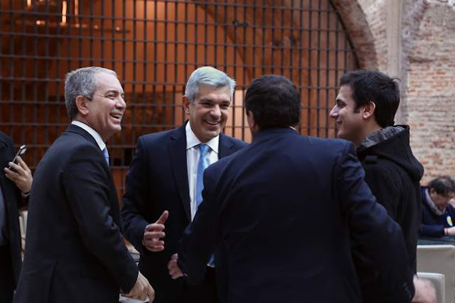 Julián Domínguez junto a Julio Alak y Julián Álvarez este mediodía en el Museo del Bicentenario