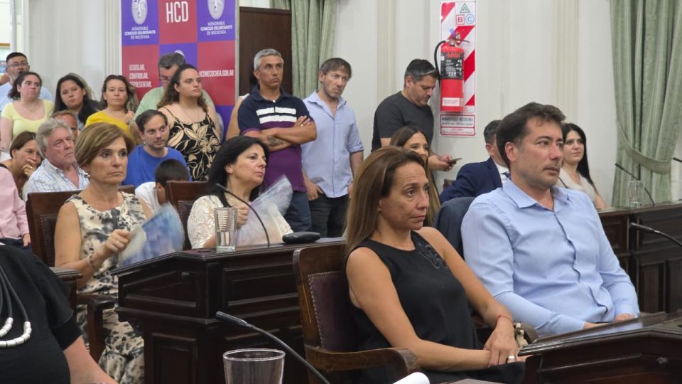 La sesión contó con un ambiente cargado de consignas, banderas y la presencia de familiares, ex concejales y funcionarios del Ejecutivo municipal.