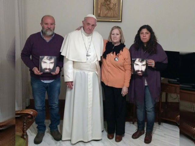Tal como estaba previsto, durante la tarde de hoy el Papa Francisco se reunió en la residencia pontificia de Casa Santa Marta, en la Ciudad del Vaticano, con los familiares de Santiago Maldonado, hallado muerto en el río Chubut luego de permanecer 79 días desaparecido tras una brutal represión de Gendarmería.