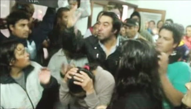 En tanto la familia de la joven se encontraba buscando consuelo y exigiendo soluciones concretas en su encuentro con los funcionarios municipales, un vecino que se acercó a la manifestación comenzó a arremeter y cargar culpas contra los jueces locales.