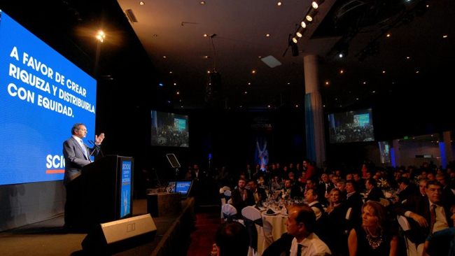 La escena se repetirá una y otra vez a lo largo de la noche en la que la «Mesa Empresaria Scioli Presidente», lanzada hace tres semanas para apoyar el proyecto del dirigente oficialista, organiza un evento para darle respaldo «al único dirigente que garantiza el camino de la Argentina hacia el desarrollo», ante la amenaza del otro proyecto (el macrista) que -entienden- propone volver al neoliberalismo.