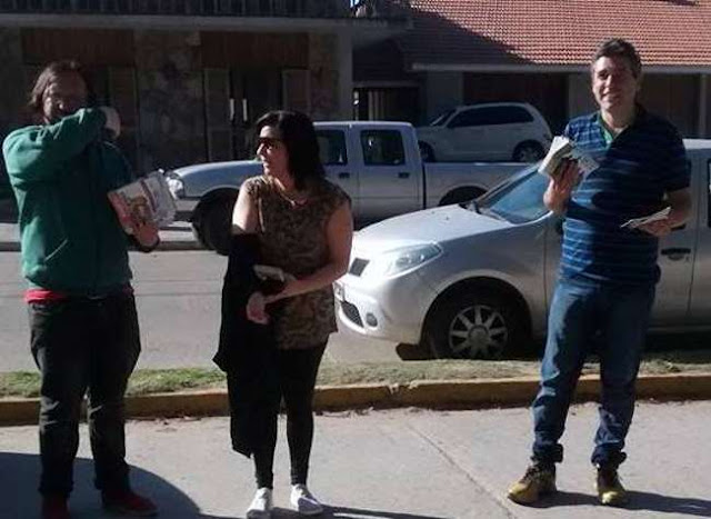Fernando Kuhn , candidato a intendente de Progresistas junto con quienes lo acompañan en la lista y con militantes de este espacio estuvieron distribuyendo las propuestas de este frente y la boletas a los vecinos en el parque miguel Lillo