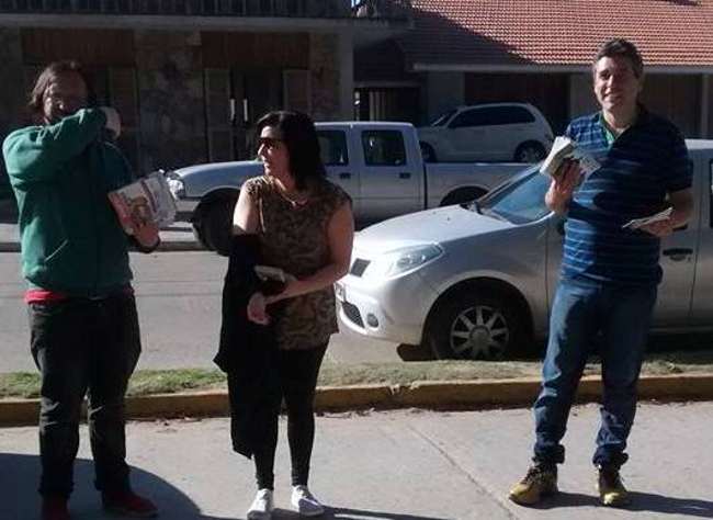 Fernando Kuhn , candidato a intendente de Progresistas junto con quienes lo acompañan en la lista y con militantes de este espacio estuvieron distribuyendo las propuestas de este frente y la boletas a los vecinos en el parque miguel Lillo