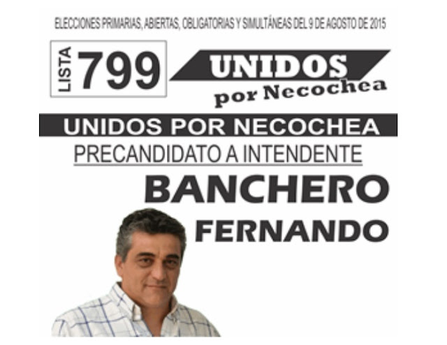 Por problemas ajenos a nuestro partido político, las boletas para las próximas elecciones PASO a celebrarse el Domingo 9 de Agosto, no serán de color violeta como fuese anunciado, por una diferencia en el tono de impresión en las boletas presentadas ante la Cámara Electoral, las boletas de UNIDOS POR NECOCHEA – LISTA 799 que lleva como precandidato a intendente a Fernando Banchero serán BLANCAS Y NEGRAS.