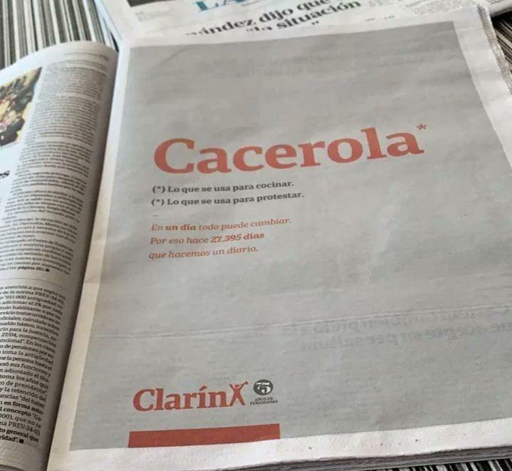 Clarín definió a la cacerola como lo que se usa para cocinar y lo que se usa para protestar.