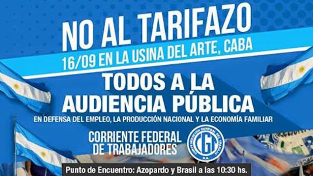 La CTA de Hugo Yasky y la Corriente Federal de Trabajadores liderada por el titular de La Bancaria, Sergio Palazzo, manifestaron mediante una conferencia de prensa la decisión de movilizar durante la realización de la audiencia pública este viernes 16 de Septiembre, en repudio al tarifazo propuesto por el gobierno nacional.