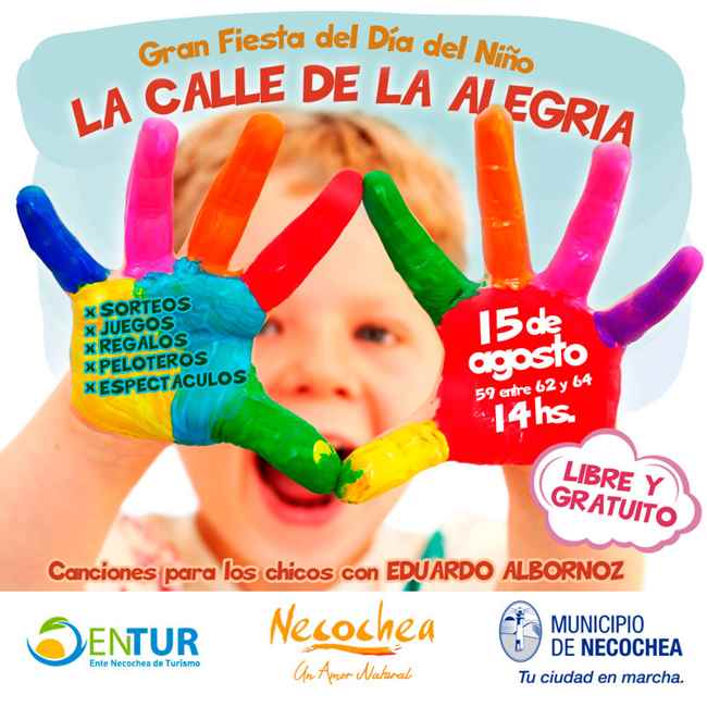 Este sábado 15 de Agosto a partir de las 14 hs. quedará habilitada la Calle de la Alegría, en avenida 59 entre 62 y 64, donde habrá una gran fiesta para celebrar el Día del Niño, con la realización de numerosas actividades para los más pequeños y atractivos sorteos de bicicletas, monopatines, pelotas, etc.