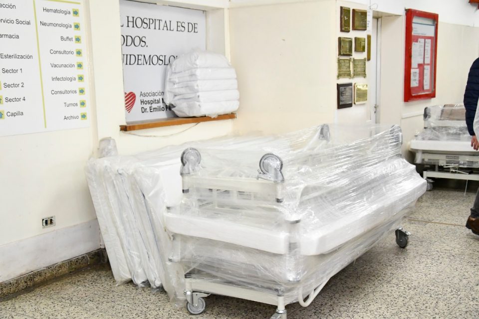 La secretaria de Salud, Ruth Kalle, recibió esta mañana, por parte de la Asociación Cooperadora del Hospital Municipal “Dr. Emilio Fereyra”, la donación de camas que serán instaladas en la nueva sala de Terapia Intermedia que se está construyendo en estos momentos.