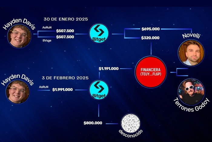 El ingeniero Fernando Molina, quien detectó las primeras transferencias irregulares de Davis, afirmó esta semana que “todas las operaciones relevantes en fechas clave fueron hacia Bitget. Hay 4 millones de dólares enviados entre el 3 y el 4 de febrero”. Y agregó: “Si la justicia o la comisión investigadora logra que Bitget responda un oficio, gran parte del caso quedará esclarecida”.