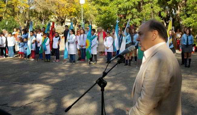 El jefe comunal cerró de esta manera el acto oficial que comenzó con el ingreso de las banderas de ceremonia, luego se entonaron las estrofas del Himno Nacional Argentino, y se escucharon las palabras del cura párroco Román Bustinza, el pastor Miguel Lorenzo, de una alumna del Instituto Nuestra Señora de Luján, de una integrante de la Asociación de Fomento del Pueblo de Nicanor Olivera, Beatriz Barbieri, y de la delegada municipal Fátima Rodríguez.