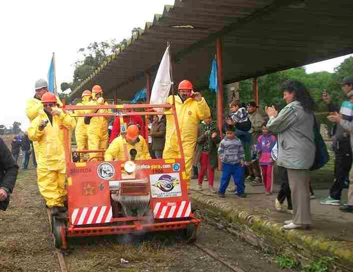 Un grupo de personas que año a año realizan esta aventura de viajar en zorras y un monta carga, acercando a los pueblos la alegría y los recuerdos de que cuando otrora pasaba el tren de pasajero, en este caso el tren que venia desde Tres Arroyos pasando x Tandil hacia Cap Federal. o el tren local que unía Benito Juárez y Tandil, el frio del martes 29 de abril, no amaino las ganas, la ilusión de ver llegar a Estación Vela a este equipo que una vez mas unió estación tras estación, gran cantidad de gente los espero, como cuando se esperaba, se aguardaba la llegada del tren.