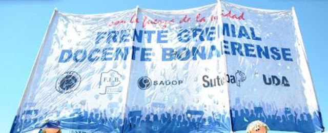 Los secretarios generales del Frente de Unidad Docente de la Pcia. De Bs. As. AMET, FEB, SADOP, SUTEBA, UDA, UDOCBA se reúnen en el día de la fecha y expresan que: