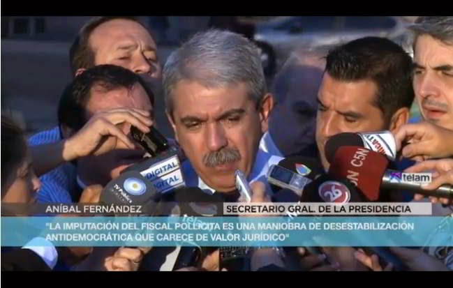 Poco antes, Aníbal Fernández había asegurado que «la imputación no tiene ningún valor jurídico» y que es «una clara maniobra de desestabilización antidemocrática».