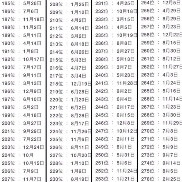 Muchos están compartiendo en Twitter y Facebook una supuesta lista japonesa que establece cómo será la suerte de cada persona según la puesta de su cumpleaños. Para hacerlo, cada fecha tiene un puesto determinado.