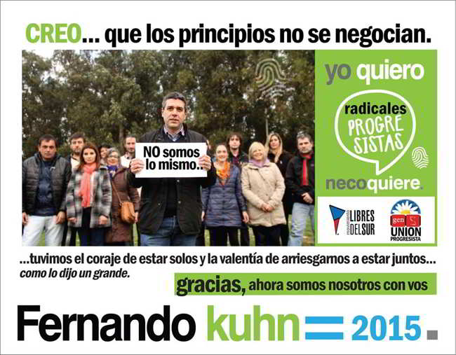 La conjunción de Radicales Progresistas, Libres del Sur y el “GEN Union Progresista” (una ruptura del GEN original) surge de la necesidad de conformar un espacio que mantenga los valores democráticos y progresistas en la ciudad. En esa conjunción se logró armar esta lista, que tienen como fin lograr el desarrollo de los ciudadanos tanto desde el punto de vista social, como cultural y económico.