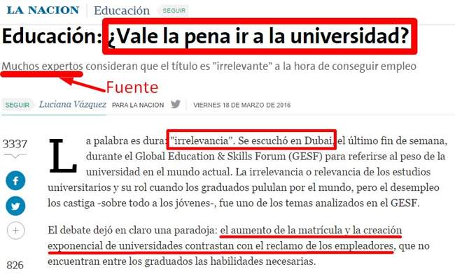 Ante la pregunta del titular («¿Vale la pena ir a la universidad?»), la primera respuesta que surge es: en un país donde se puede llegar a Presidente con un nivel de lectura similar a un niño de 3º grado, coincidente con su capacidad de análisis estadístico, la respuesta parece ser que la universidad no es relevante.