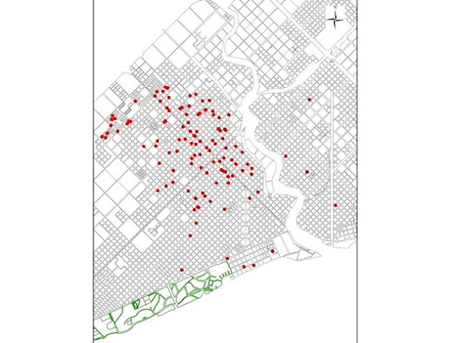 «Este es el mapa que estamos armando con todas las denuncias de sobrefacturación de la UPC de Necochea y Quequen. Nos falta mucho por cargar, pero a simple vista se nota todas las áreas a las que no se les tomó el estado del medidor» señala Jensen en forma contundente.