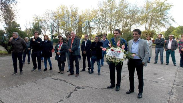Como parte de las celebraciones, también el Intendente y el delegado colocaron una ofrenda floral en el monumento del fundador de la localidad, Nicanor Olivera.