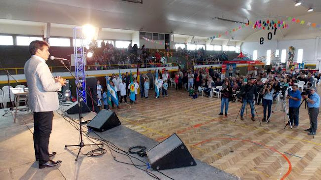 “La unidad es lo que le da fuerza a un Distrito, y la verdad es que esta es una comunidad que ha tenido el valor y la templanza para estar de pie”, aseveró en su discurso el intendente Dr. Facundo López. A la anunciada obra de la planta de efluentes cloacales, el jefe comunal adelantó la red cloacal. Además, anunció un proyecto para la nueva plaza, con nuevos pluviales y un anfiteatro. Se cantó el feliz cumpleaños alrededor de una gran torta y se presentaron diversos números artísticos.