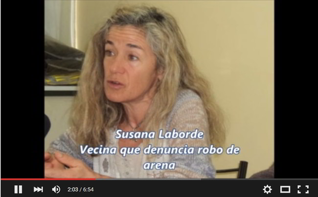 Las denuncias han sido claras y concretas ante la justicia y también públicamente en los distintos medios que los hemos entrevistados y por las redes sociales como Factbook, especialmente, donde se pueden visualizar el constante robo de arena que se produce a plena luz del día sin que las autoridades competentes (uno es Carlos Samprón), intervengan para hacer cumplir las disposiciones municipales y las leyes provinciales sobre minería.