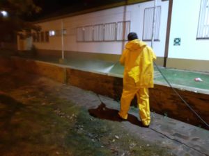 La UPC es la que pone toda la logística y los materiales, mientras que el grupo de voluntarios, con algunos empleados de institución, se encargan de llevar adelante el lavado de las veredas. “A medida que fuimos avanzando los vecinos y vecinas nos pedían que pasáramos por tal calle, como nos ocurrió con el exCine Gran Sud, que estaba toda con palomas muertas y otras cosas más, que se transformaba en un foco infeccioso de todo de tipo de enfermedades” contó Antonio Vilchez.