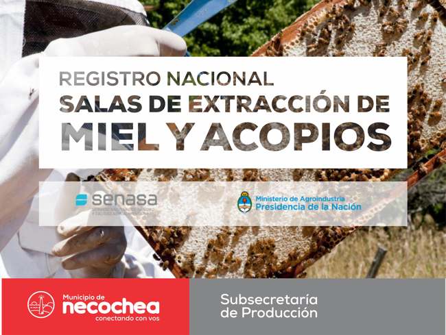 La Subsecretaría de Producción e Innovación Tecnológica municipal informa que el Servicio Nacional de Sanidad y Calidad Agroalimentaria (Senasa) promulgó la Resolución N° 515/2016, para registrar en forma gratuita y obligatoria a las salas de extracción de miel y acopios intermedios de todo el país.