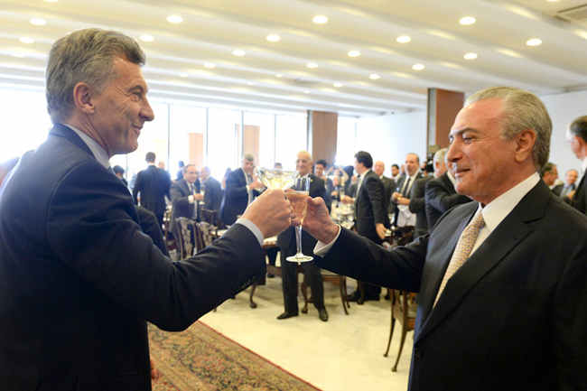 Además de Temer -citado como supuesto receptor de coimas en la causa del Lava Jato– almorzaron con Macri el canciller José Serra -al que le descubrieron dos cuentas en Suiza por la «delación premiada» de un detenido–; el expresidente José Sarney, acusado de conspirar para ocultar el Lava Jato; y el presidente del Senado, Eunicio Olivera, acusado de recibir 5 millones de reales de «aportes de campaña» en modo irregular. Macri, como se sabe, también recibió aportes de la constructora para su campaña. Pero todo indica que ese aporte no es lo único que liga al presidente con el Club de Beneficiarios de Odebrecht. «