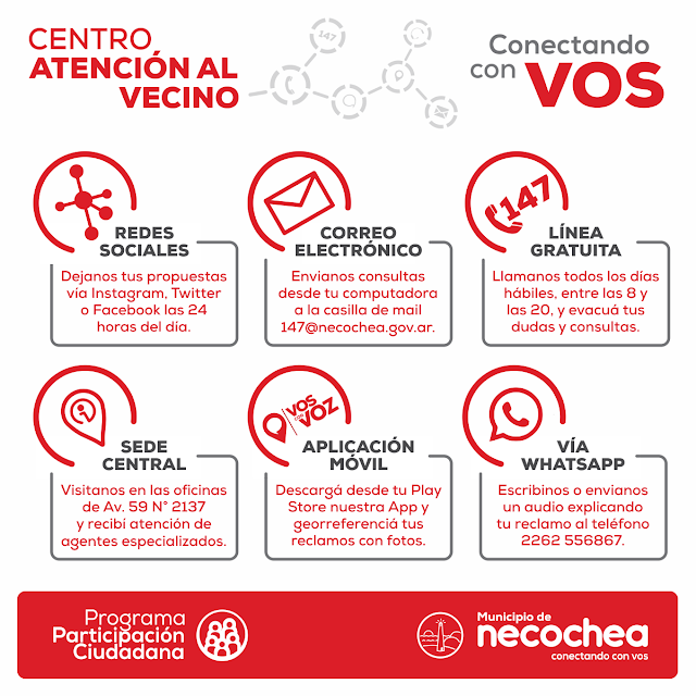 Cabe recordar que el Centro de Atención al Vecino funciona bajo la órbita del Programa de Participación Ciudadana, un área creada bajo la actual gestión de gobierno del intendente Facundo López para estar más cerca de la comunidad, y cuyos destinos están a cargo de Marcelo Ansean.