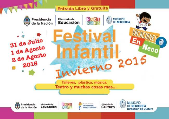 La Dirección de Cultura informa que durante los días viernes 31 de julio, sábado 1 y domingo 2 de agosto, se realizará el 3º Festival Infantil de Invierno, de carácter público, gratuito y para toda la familia.