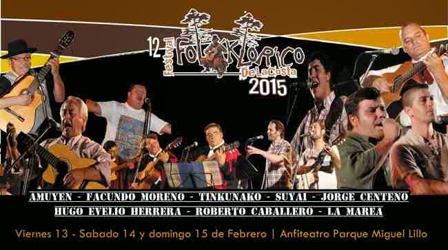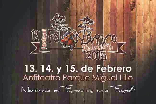 Los dias 13, 14 y 15 de Febrero desde las 21:00 horas, se realizará la 12da edición del Festival Folklórico de La Costa en el Anfiteatro del Parque Miguel Lillo.