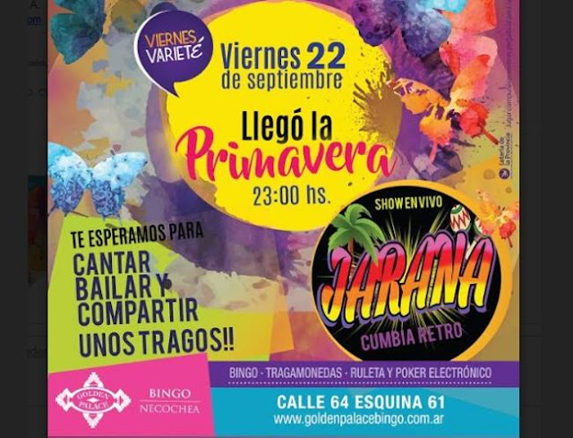 Esta noche, festejamos la llegada de la primavera con una propuesta imperdible. Desde las 23:00hs, se presentará en nuestro escenario la banda local “Jarana” para que pases una noche super divertida.