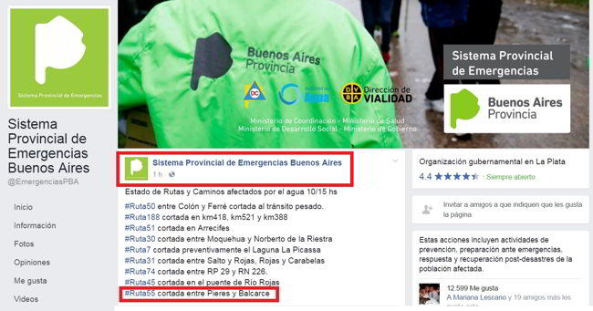 15.30 hs. Estado de #Rutas afectadas por agua #cortes #tránsito https://t.co/BmDhuKVq5Z @defensacivilba pic.twitter.com/4WIy7xnmuU— Vialidad Bs. As. (@VialidadBA) 10 de abril de 2017