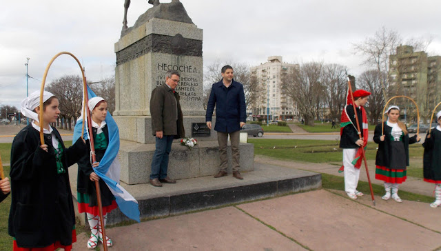 Primeramente se realizó en el hall municipal un baile típico a cargo de alumnos vascos, y luego la comitiva se dirigió a colocar ofrendas florales en los monumentos de Mariano Necochea y Ángel Murga, este último fundador de la ciudad. Por último, en el árbol de Guernica, Símbolo de Libertades Vascas, se colocaron las tradicionales rosas rojas y blancas, se cantó el himno y se produjo otro baile representativo.